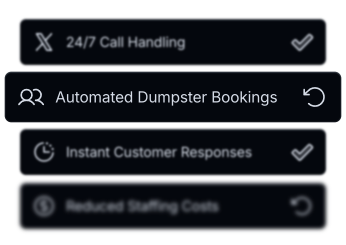 Our AI voice assistant doesn’t just answer calls—it transforms how your dumpster rental business operates. From capturing after-hours leads to automating bookings, you’ll reduce costs, increase revenue, and finally have time to focus on growth instead of phone tag.